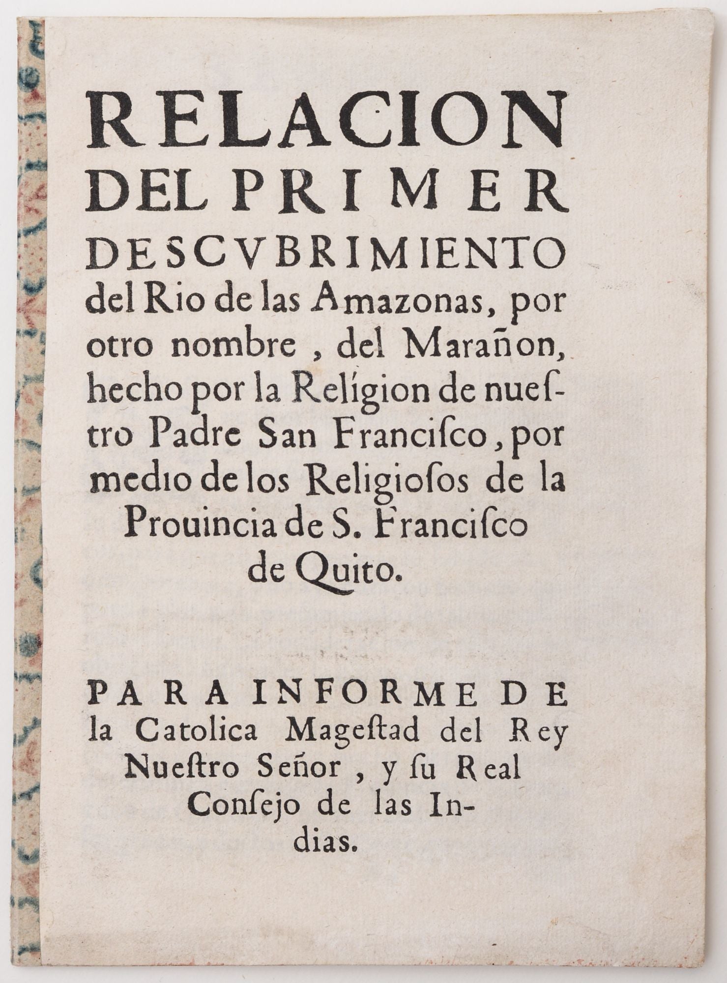 Relacion del primer descubrimiento del rio de las Amazonas, por otro nombre, del Marañon, heho por la religion de nuestro Padre San Francisco, por medio de los religiosos de la provincia de S. Francisco de Quito. Para informe ... del Rey ... y su Real Consejo de las Indias.