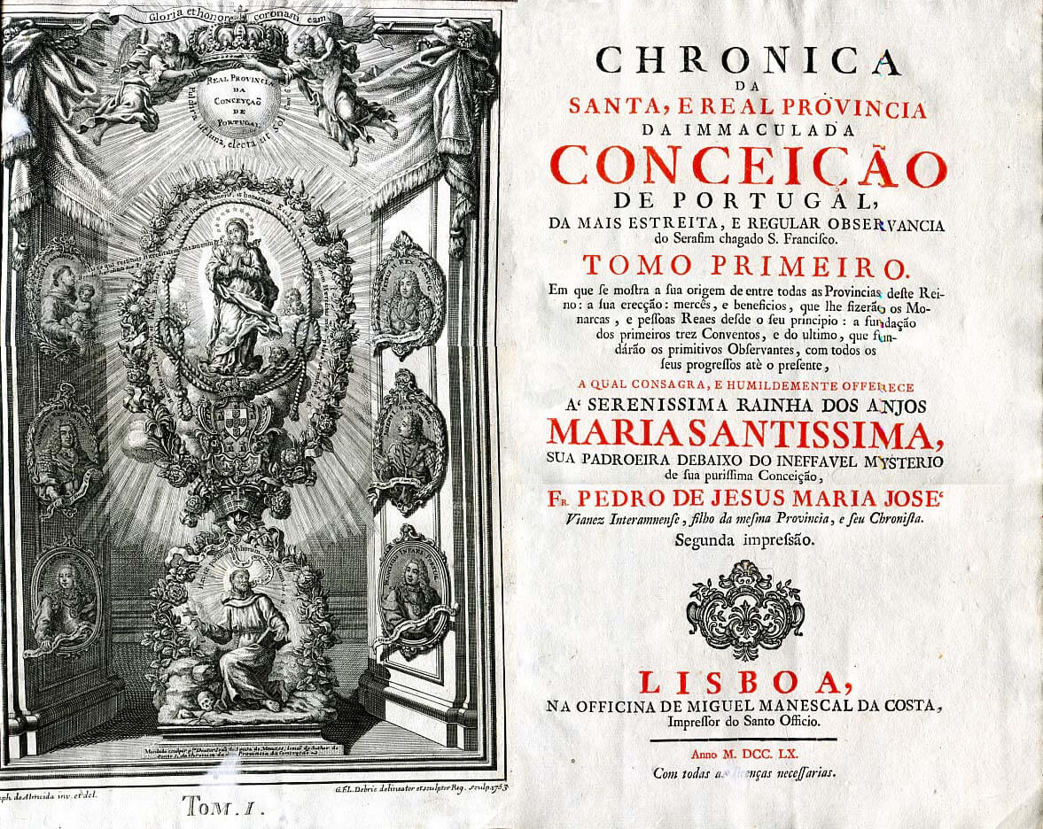 José, Fr. Pedro de Jesus Maria. Chronica da santa e real província da Imaculada Conceição de Portugal, da mais estreita, e regular observância do serafim chagado S. Francisco. Lisboa: Off. Miguel Manescal da Costa, 1760.